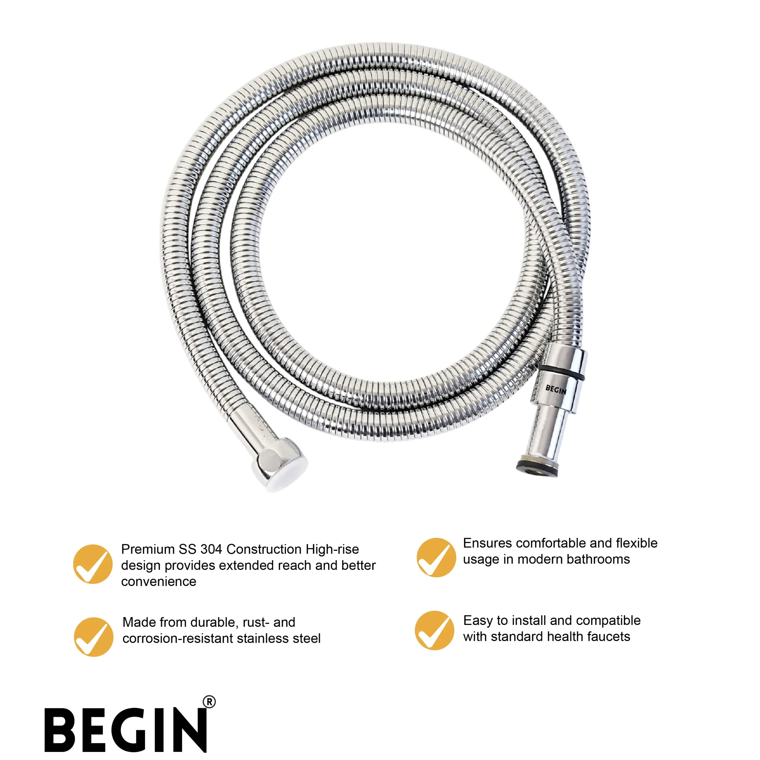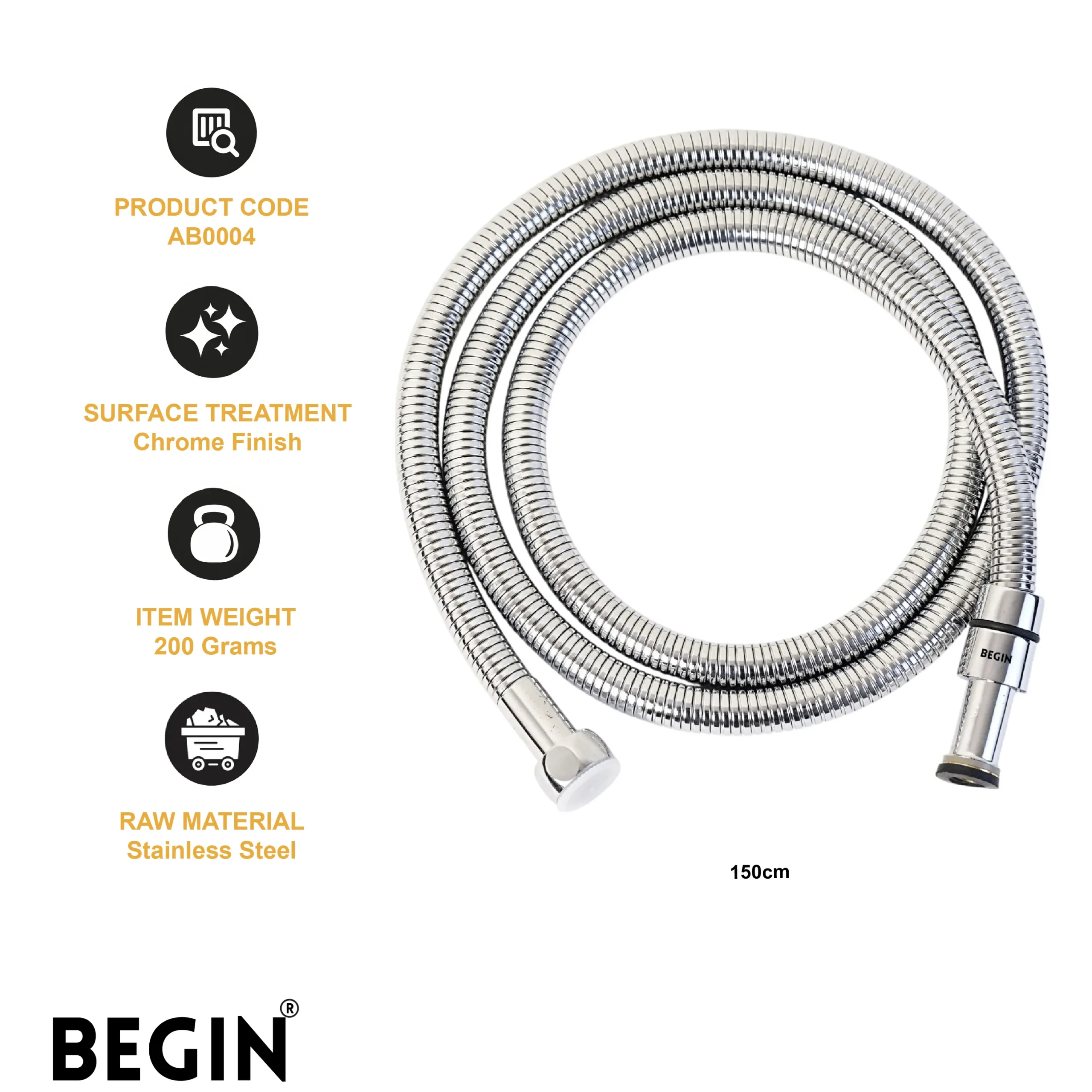 The BEGIN 1.5 Meter SS Tube Hi Rise AB0005 is designed to provide enhanced reach and convenience for bathroom health faucets. Its high-rise structure makes it ideal for modern setups, ensuring comfortable usage.