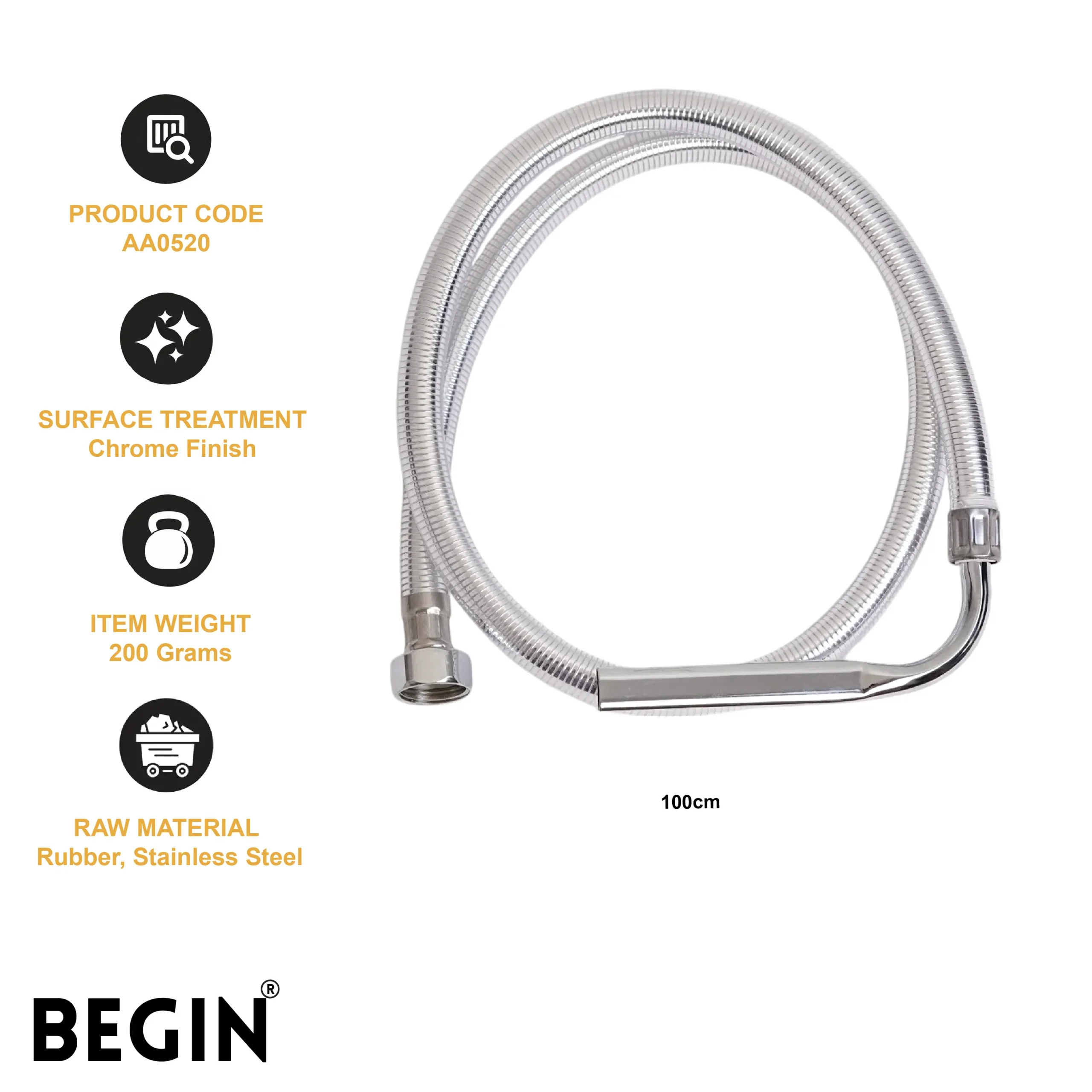 The BEGIN 1 Meter Multi Jet Hose with SS 304 Clamp AA0520 is designed for reliable water connections in bathrooms and kitchens. Its high-quality multi jet hose ensures smooth water flow and durability, making it ideal for everyday use.