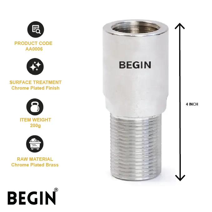 The BEGIN Brass Extension Nipple 4″ AA0006 is designed to provide a secure and reliable connection for plumbing systems. Its precision threading ensures a leak-free fit, making it ideal for various water installations.