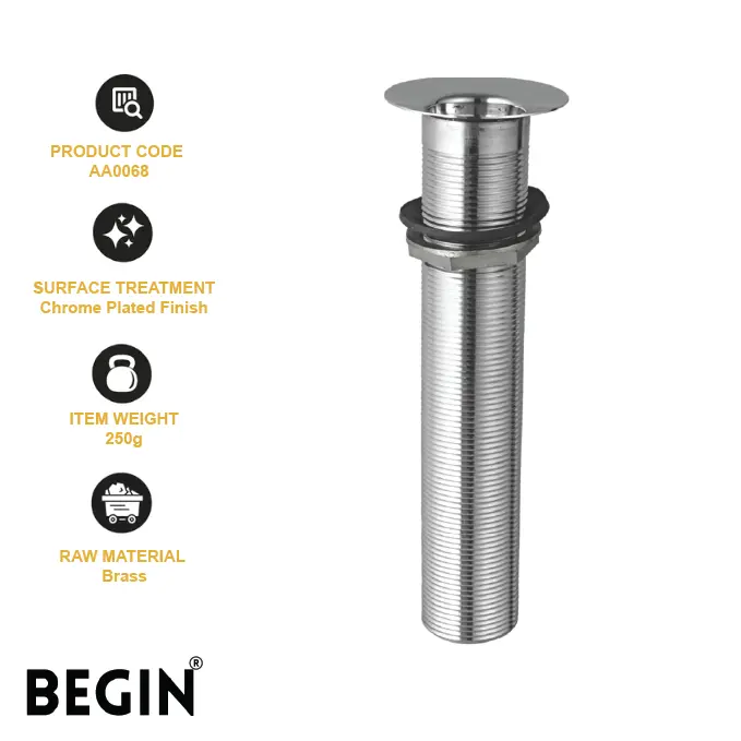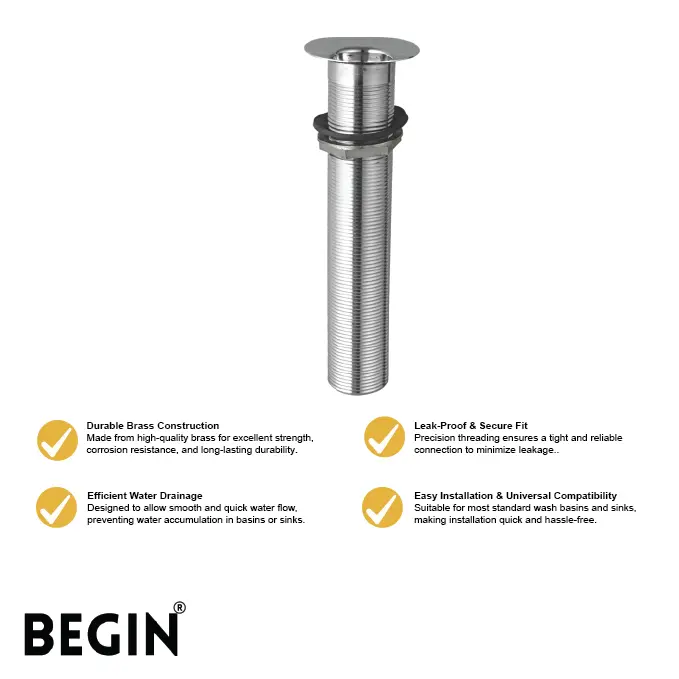 The BEGIN Brass Waste Coupling 9″ AA0068 is designed to ensure efficient water drainage for wash basins and sinks. Its precise design helps maintain smooth water flow while preventing leakage, making it a reliable choice for modern bathroom installations.