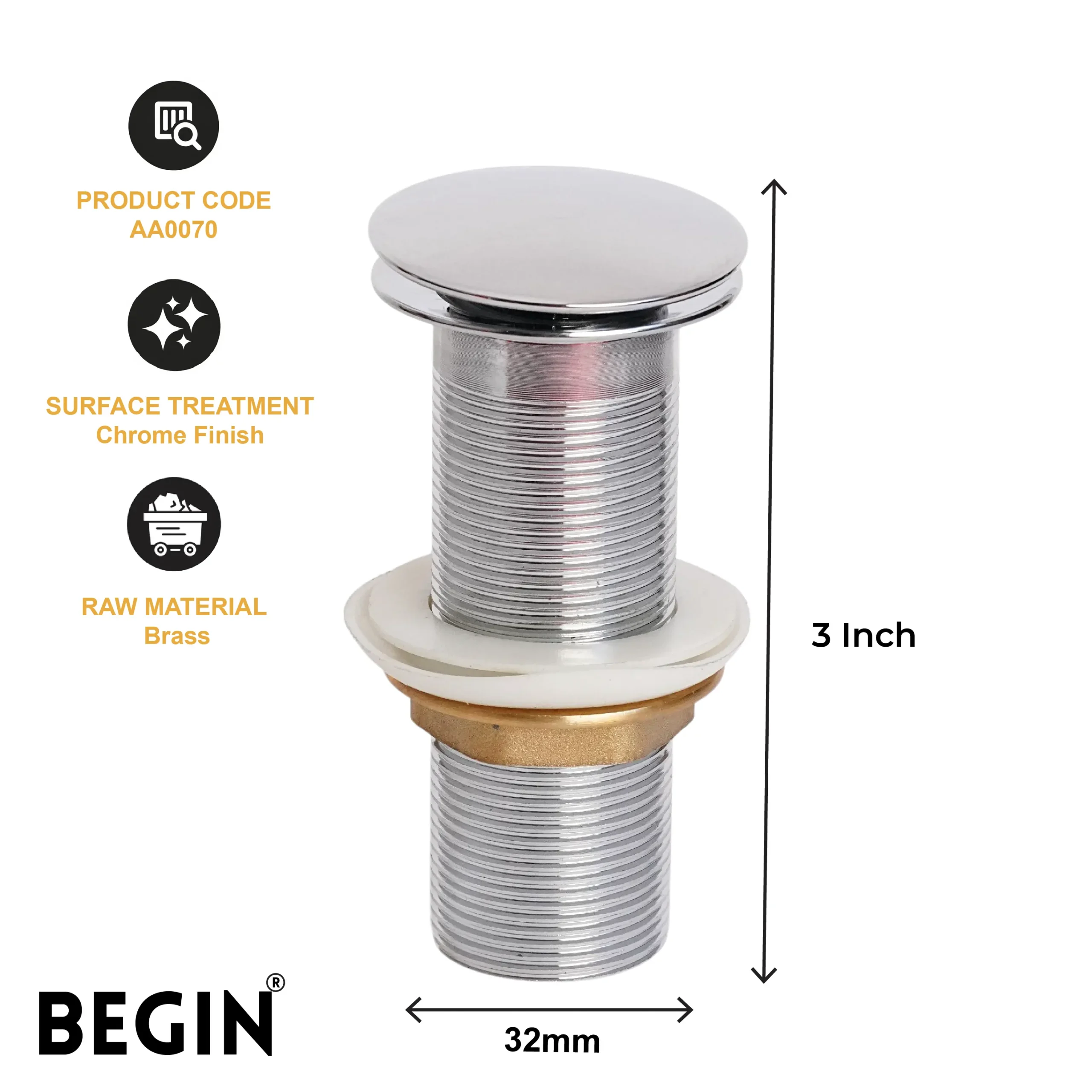With its 5-inch size and practical design, the BEGIN Pop Up Brass Waste Coupling AA0071 is compatible with standard basin drainage systems. It offers easy installation and a secure, leak-resistant connection for smooth and dependable water drainage.
