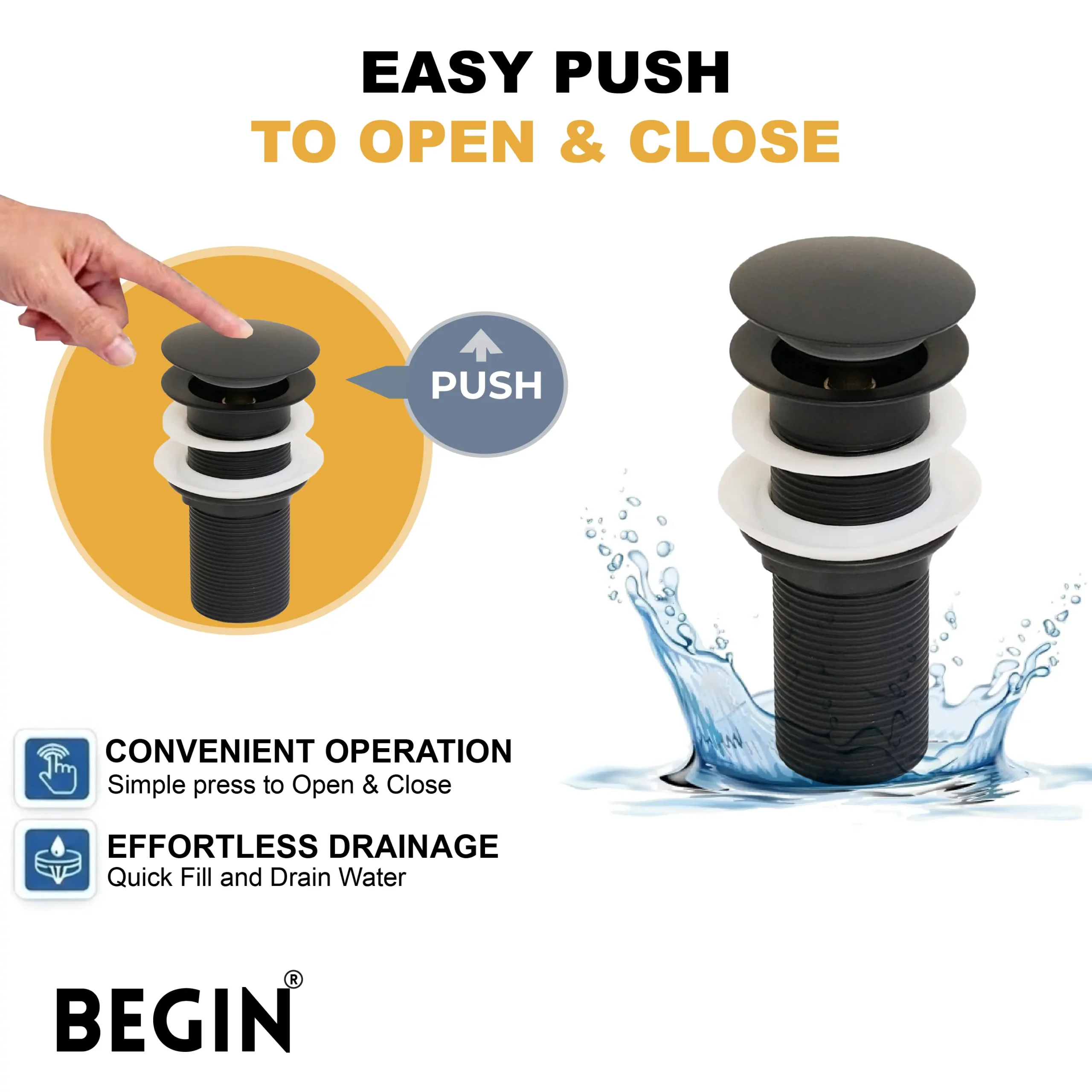 • Smooth Pop-Up Mechanism: Push-button design allows easy opening and closing for convenient water drainage control.