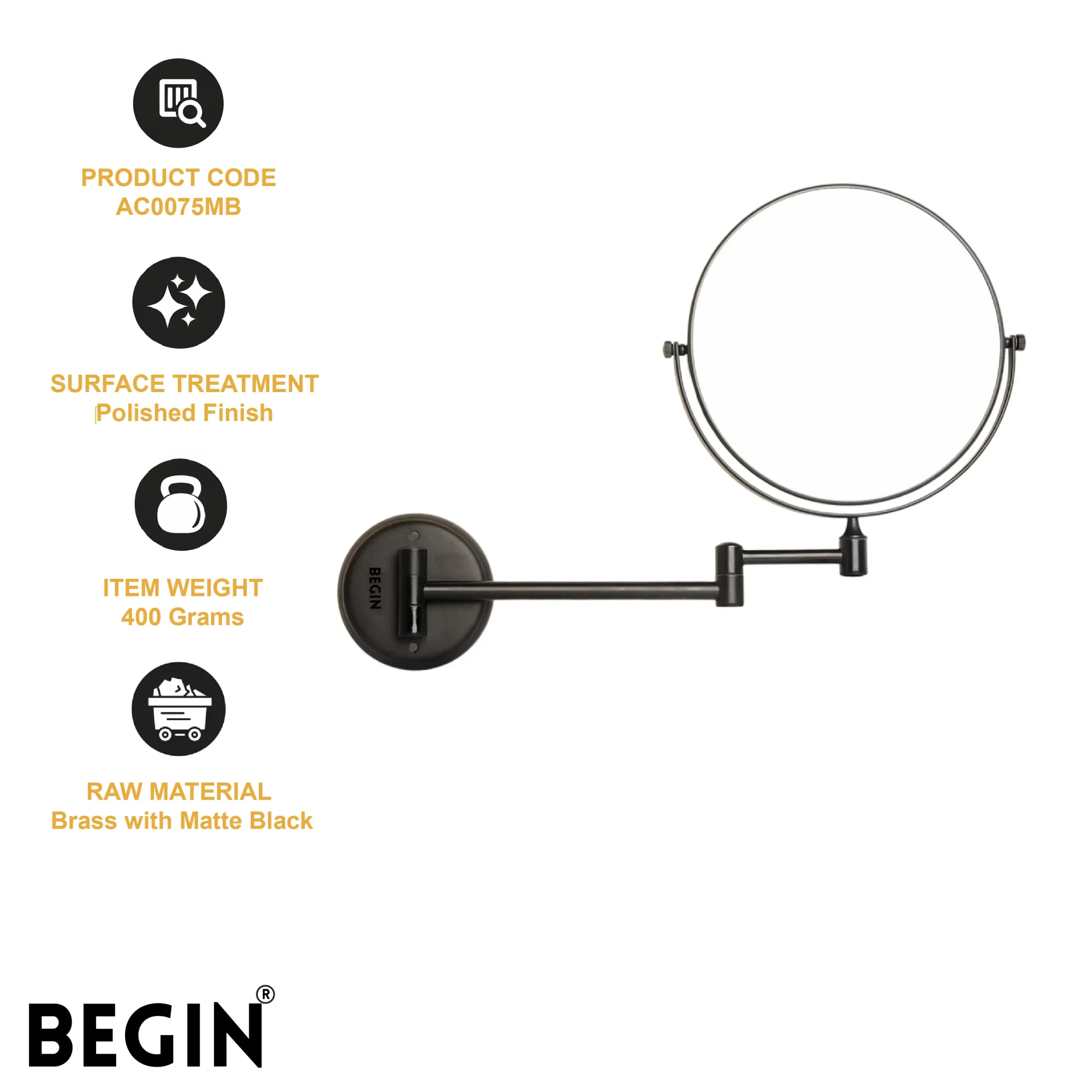 BEGIN Premium Matte Black Brass Magnifying Mirror AC0075MB