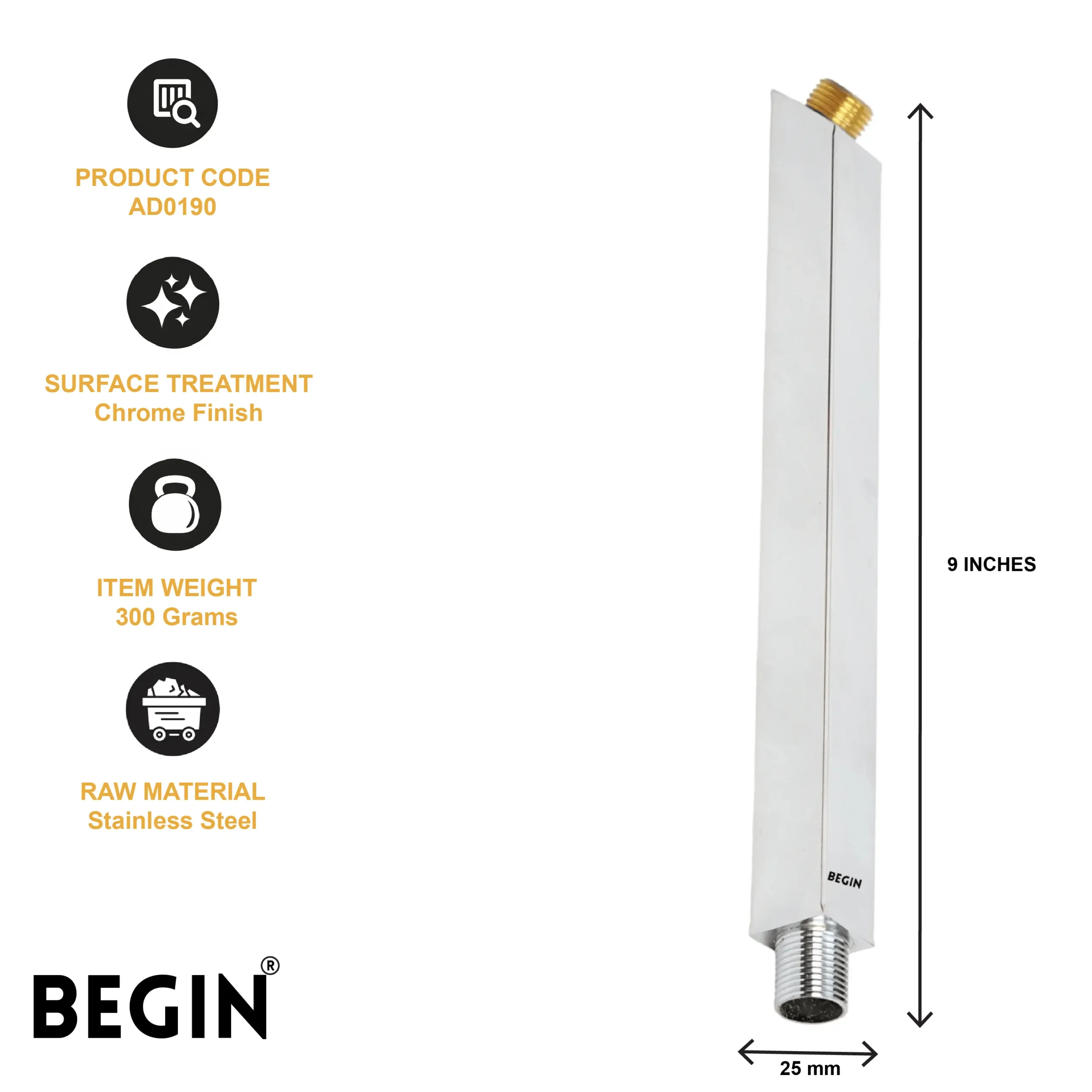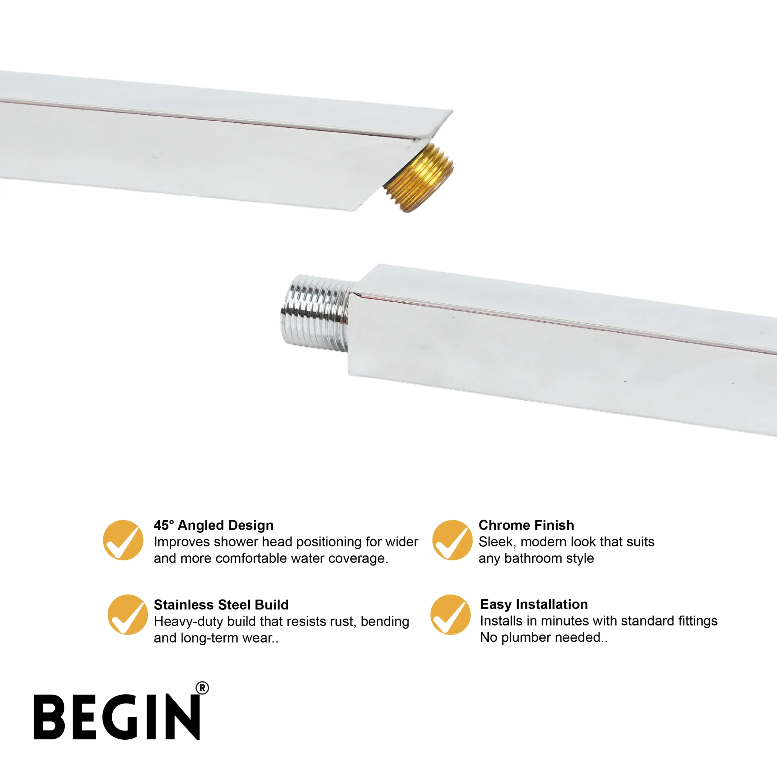 The BEGIN Ceiling Square Shower Rod 45 Degree AD0190 is designed to provide a modern and structured look to your bathroom space. Its square frame with a precise 45-degree design offers clean lines that perfectly complement contemporary interiors.