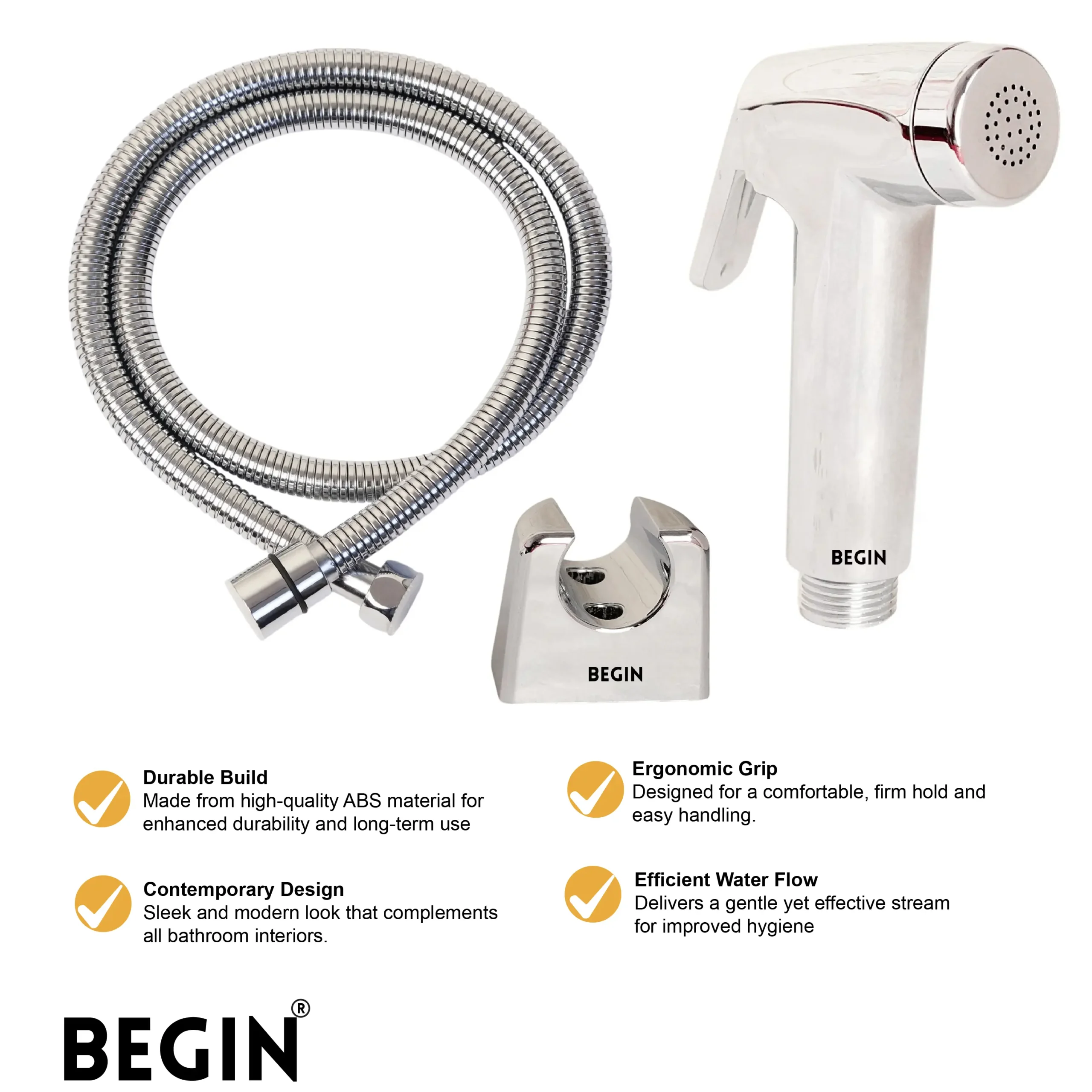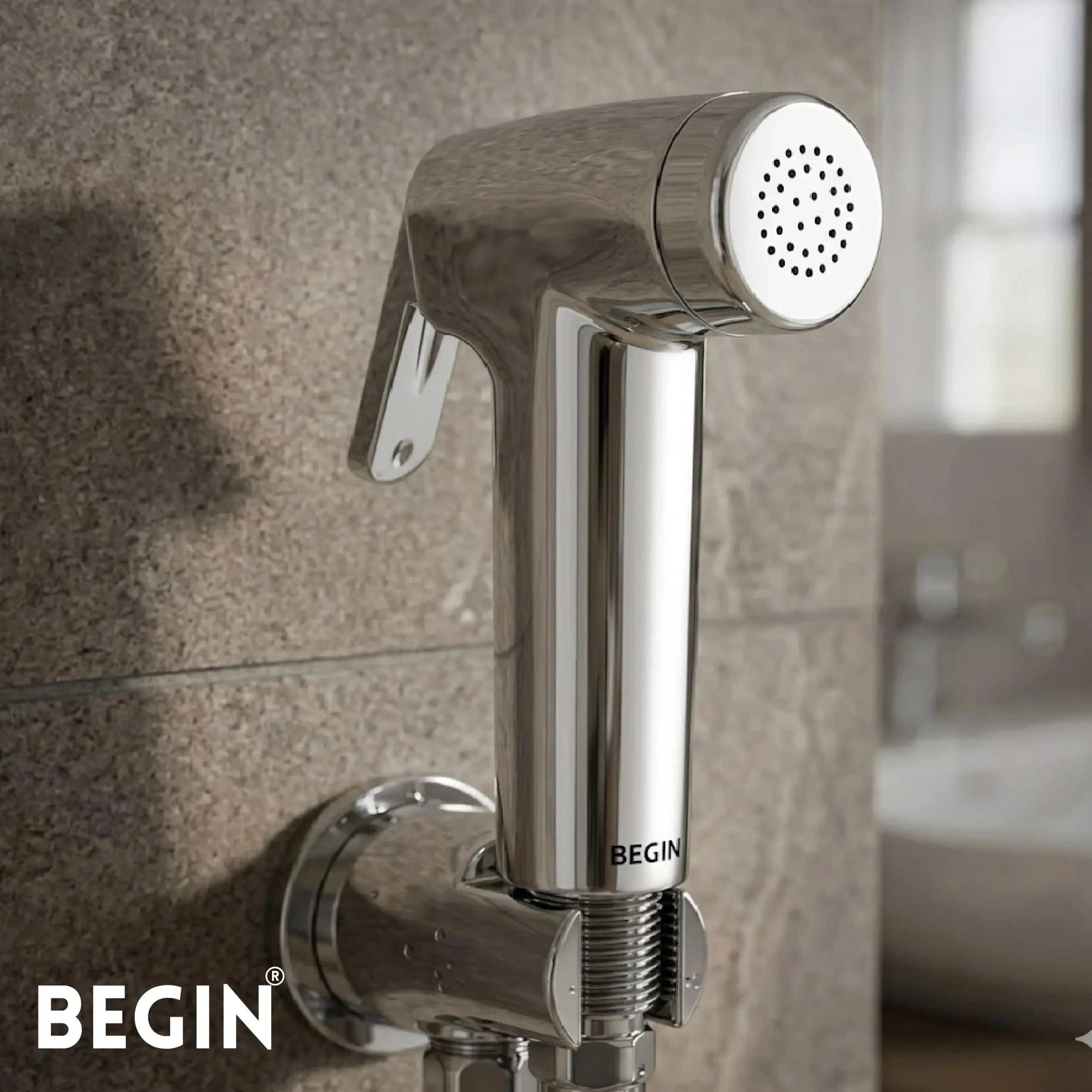 The BEGIN Pixel Lo Rise Health Faucet AB0153 is designed for compact bathroom setups, offering efficient hygiene with a sleek, modern design that fits seamlessly beside your toilet.