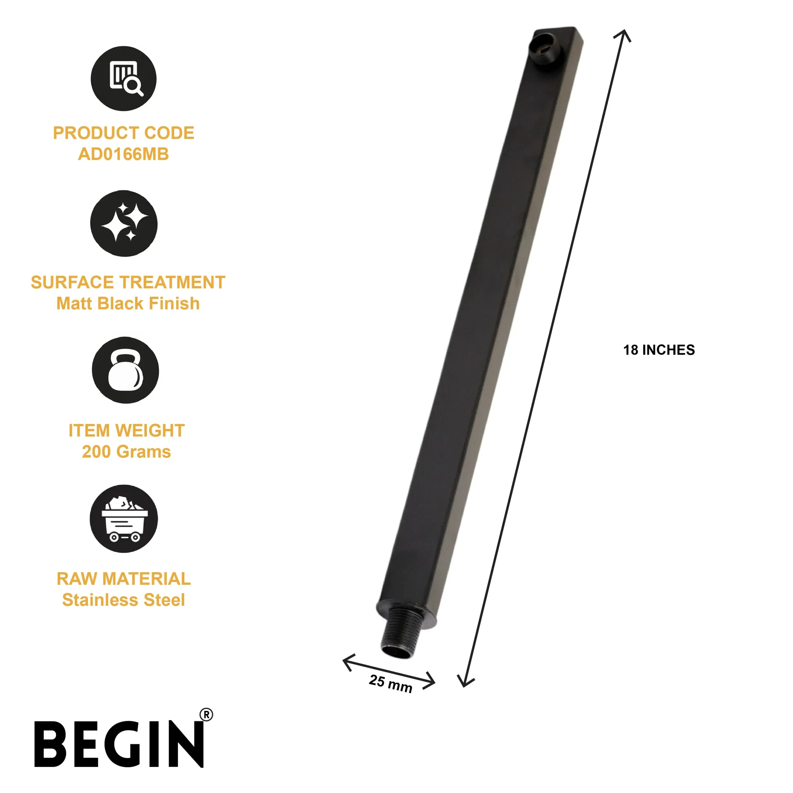 BEGIN Matte Black Square Shower Arm Wall Mount AD0166MB