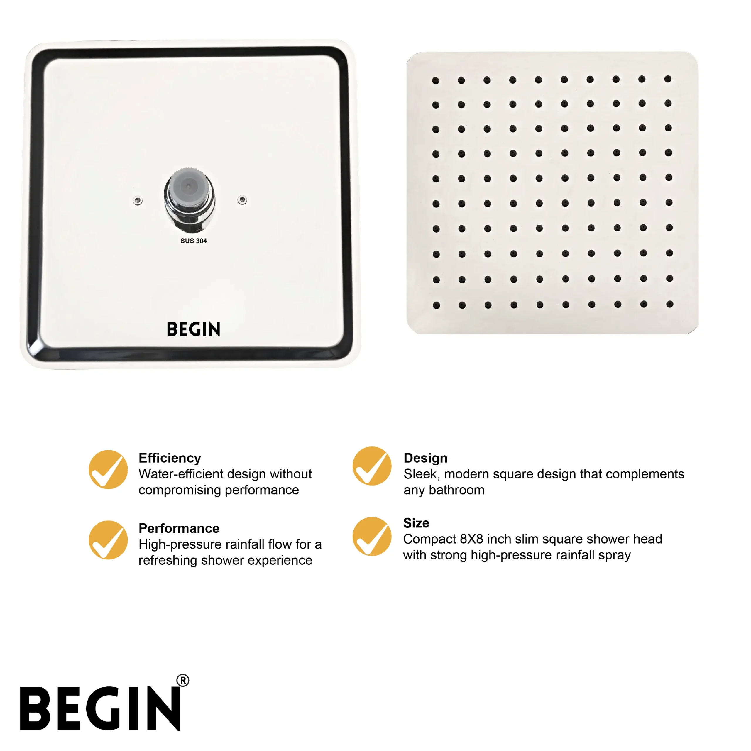 The BEGIN Special Slim 8×8 Inch Square Overhead Shower Head AB3132 is designed to provide a luxurious and refreshing shower experience. Its ultra-slim square design adds a modern and elegant touch to contemporary bathrooms.